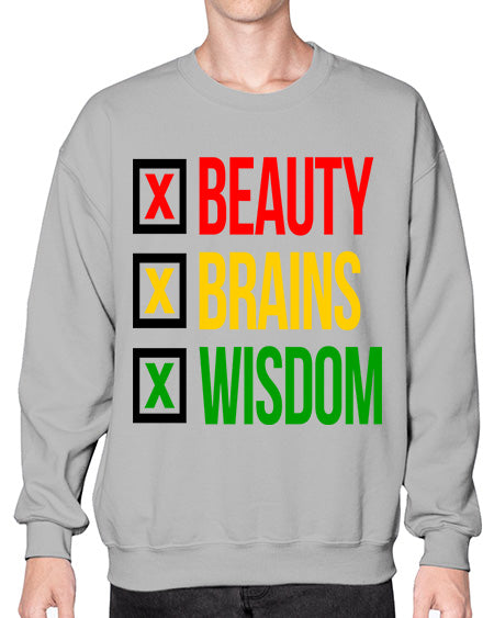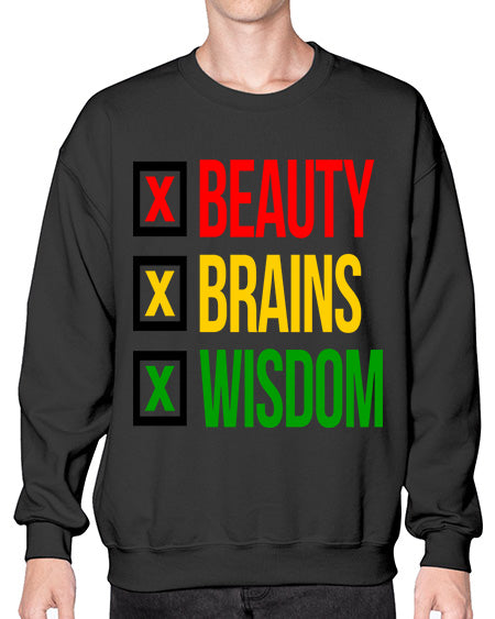beauty brains wisdom 262# - black words and phrases- Sweatshirt - Crew