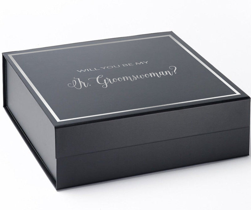 Will You Be My Jr Groomswoman? Proposal Box black - Border - No ribbon