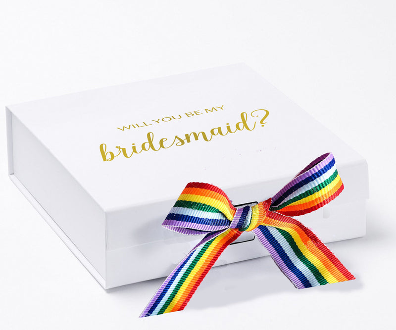 Will You Be My bridesmaid? Proposal Box White - No Border - Rainbow Ribbon