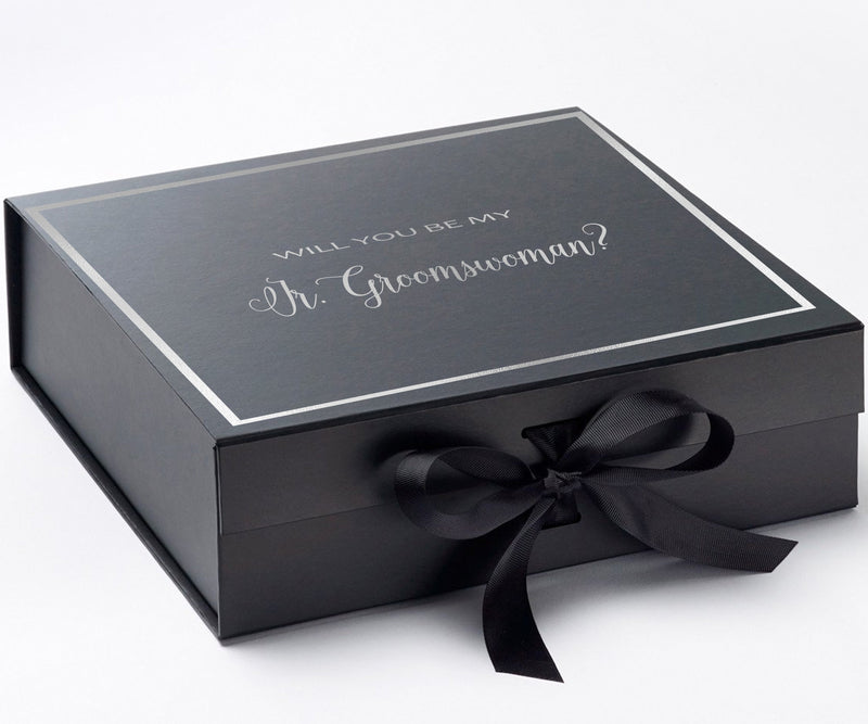 Will You Be My Jr Groomswoman? Proposal Box black - Border - No ribbon