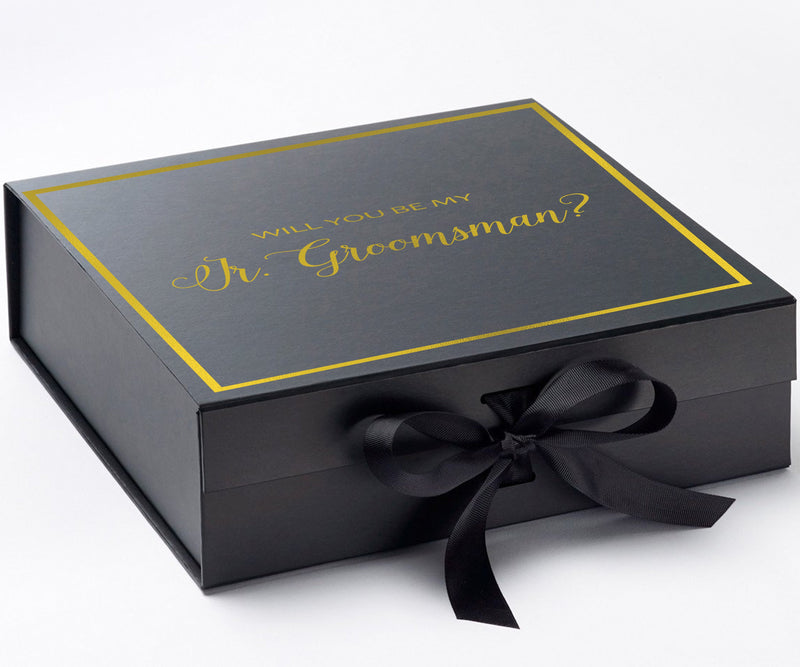 Will You Be My Jr Bridesmaid? Proposal Box black - No Border - Rainbow Ribbon