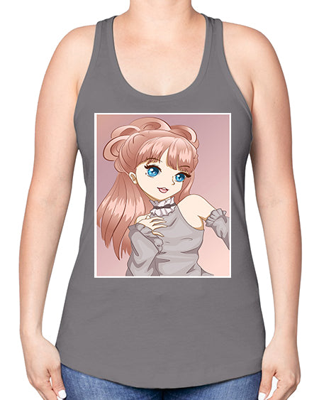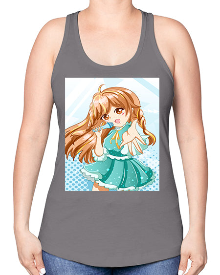 Cute and beautiful princess with brown long hair 55# - anime -Racerback Tank