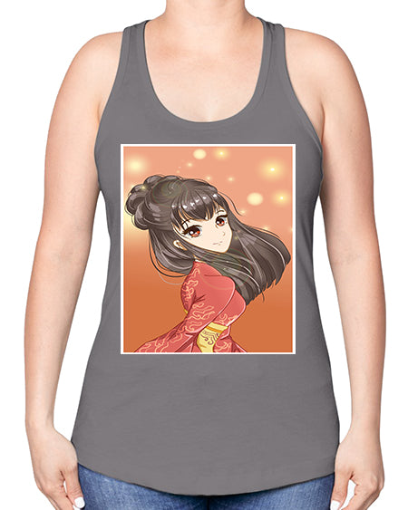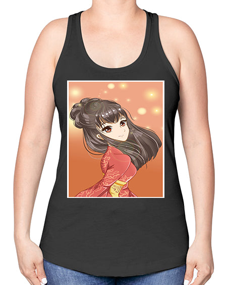 Cute and beautiful girl with red kimono 52# - anime -Racerback Tank