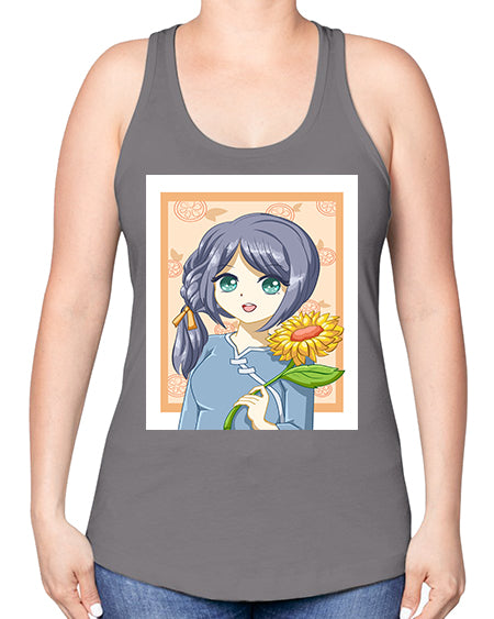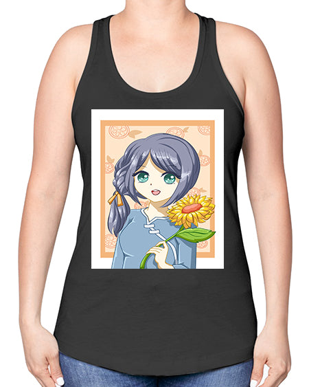 Cute and beautiful girl with sunflower in the summer 165# - anime -Racerback Tank