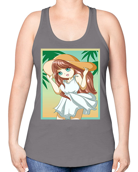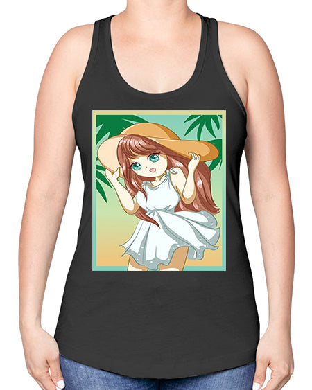 Cute and beautiful girl with white dress in beach at summer 162# - anime -Racerback Tank