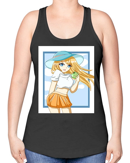 Cute and beautiful girl yellow hair with apple in the summer 158# - anime -Racerback Tank