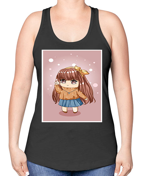 Cute and beautiful little girl long brown hair 149# - anime -Racerback Tank