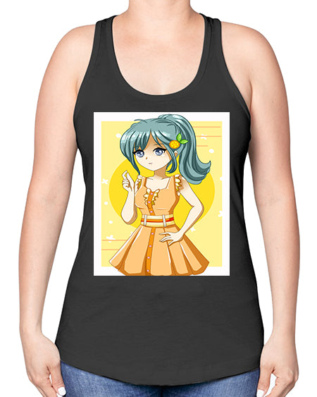 Cute and beautiful orange theme girl in summer 45# - anime -Racerback Tank