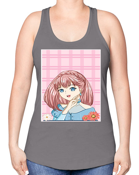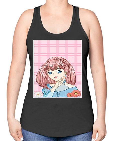 Cute and beautiful princess pink short hair 72# - anime -Racerback Tank