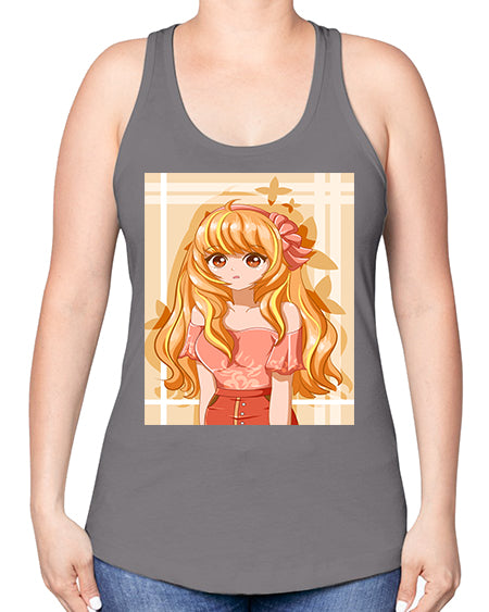 Cute and beautiful girl blonde hair with ribbon 110# - anime -Racerback Tank