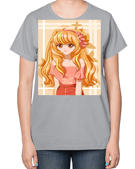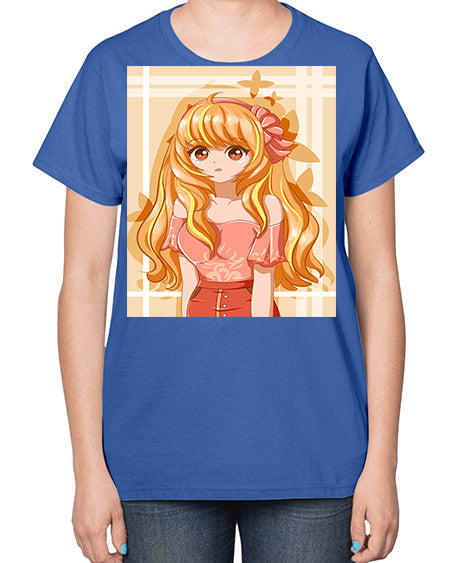 Cute and beautiful girl blonde hair with ribbon 110# - anime- Ladies T-Shirt
