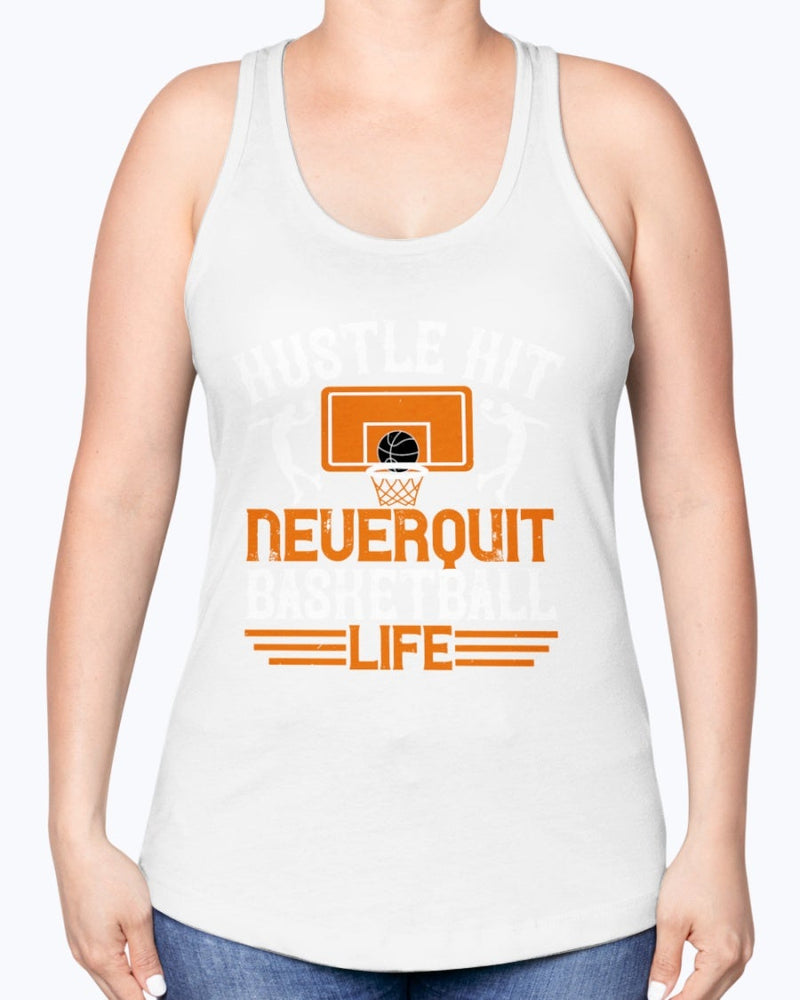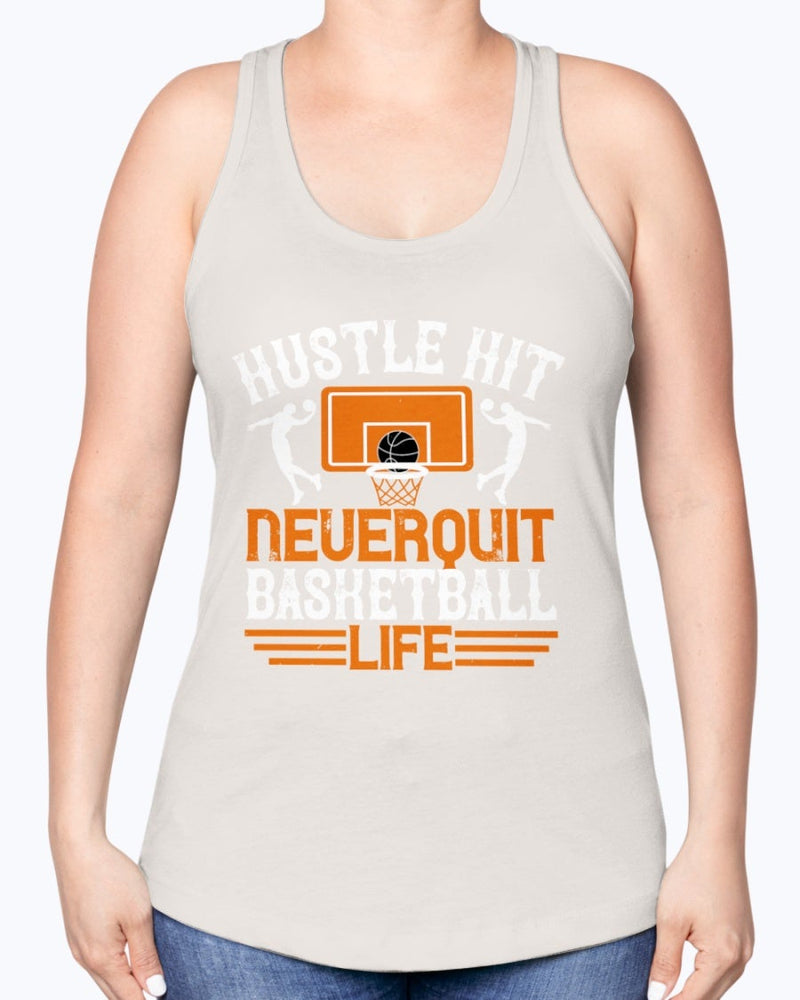 Hustle, hit. Never quit basketball life - Basketball -Racerback Tank