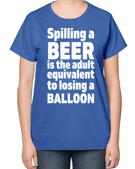 spilling a beer is the adult equivalent to losing a balloon 1563# - beer- Ladies T-Shirt