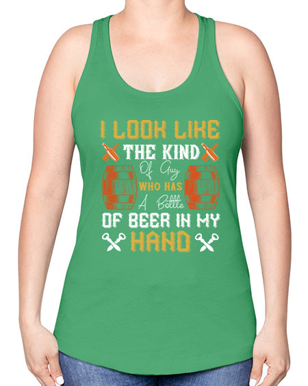i look like the kind of guy who has a bottle of beer in my hand 1130# - beer -Racerback Tank