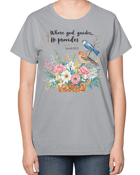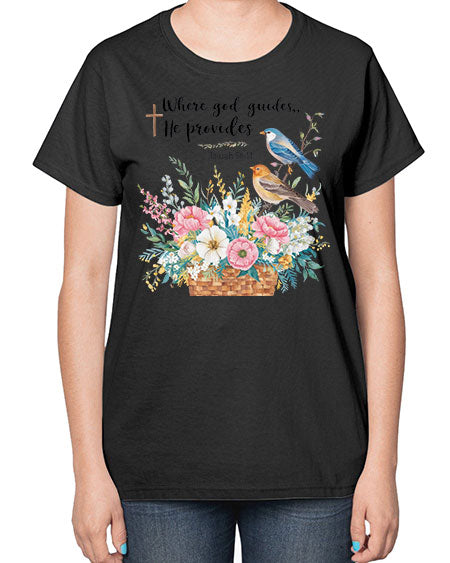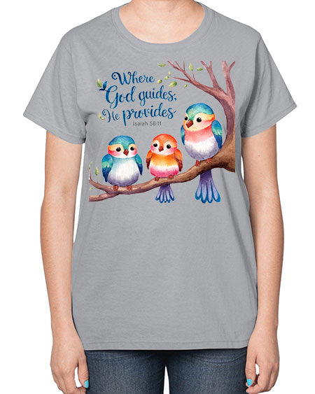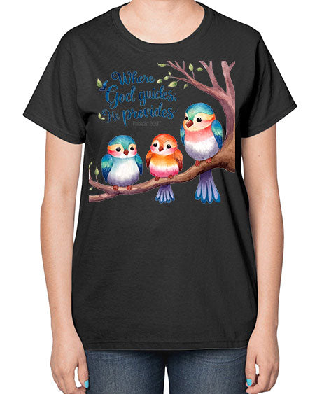 where god guides, he provides 77# - birds- Ladies T-Shirt