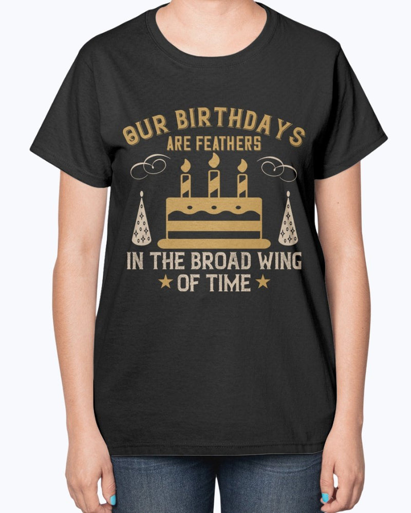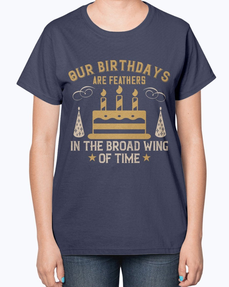 Our birthdays are feathers in the broad wing of time- Birthday -Ladies T-Shirt