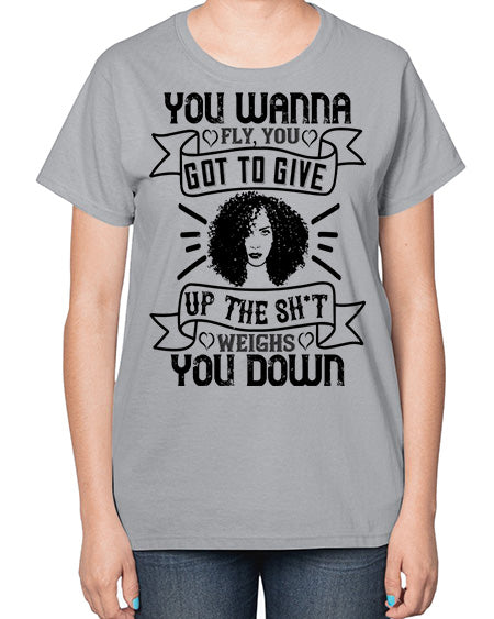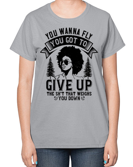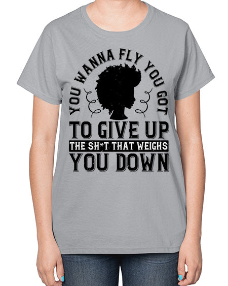 You wanna fly you got to give up the sht that weighs you down Style 47# - black afro- Ladies T-Shirt