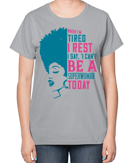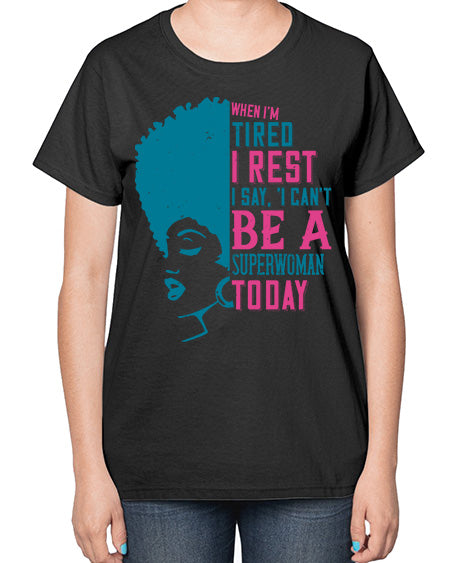 When Im tired I rest I say I cant be a superwoman today Style 11# - black afro- Ladies T-Shirt