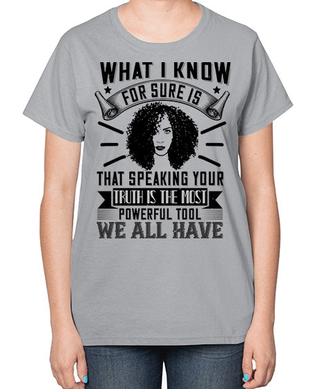 What I know for sure is that speaking your truth is the most powerful tool we all have Style 13# - black afro- Ladies T-Shirt
