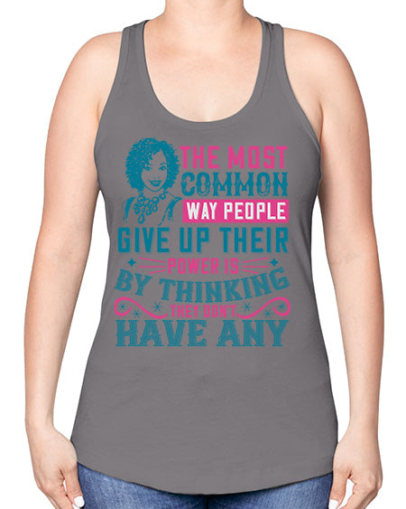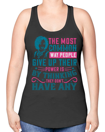The most common way people give up their power is by thinking they dont have any Style 15# - black afro -Racerback Tank