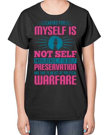 Caring for myself is not selfindulgence it is selfpreservation Style 36# - black afro- Ladies T-Shirt