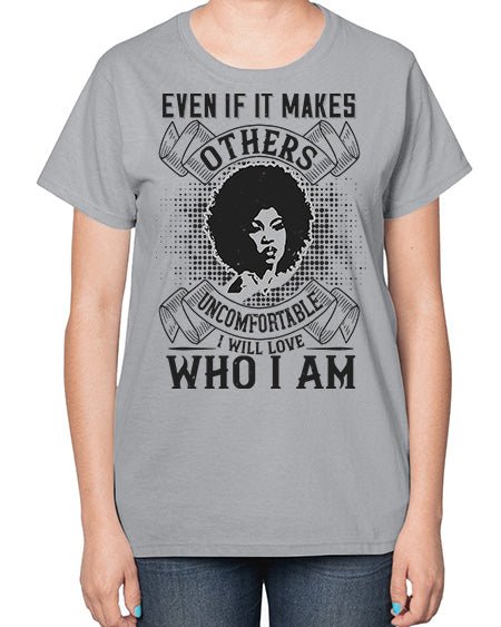 Even if it makes others uncomfortable I will love who I am Style 35# - black afro- Ladies T-Shirt