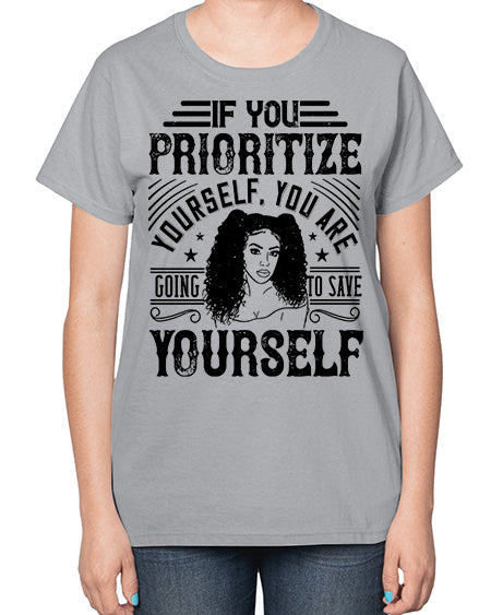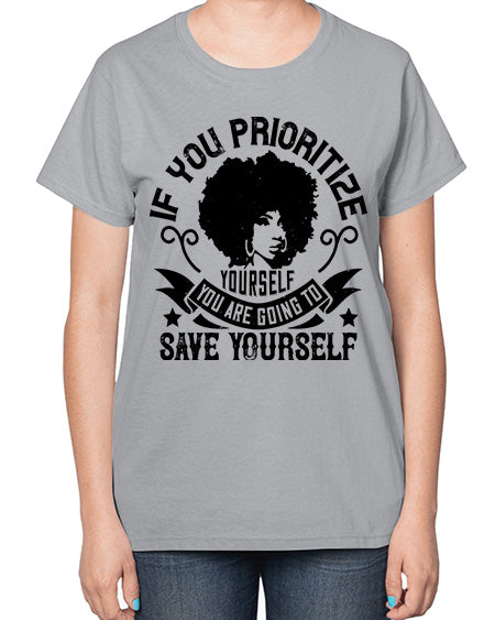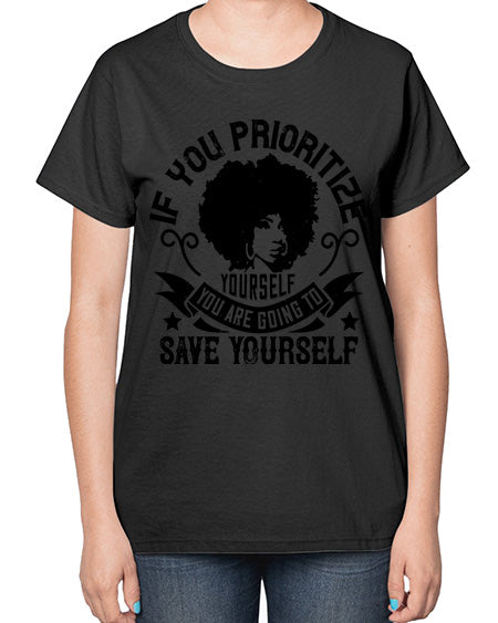 If you prioritize yourself you are going to save yourself Style 21# - black afro- Ladies T-Shirt