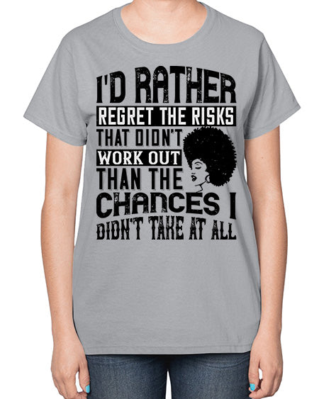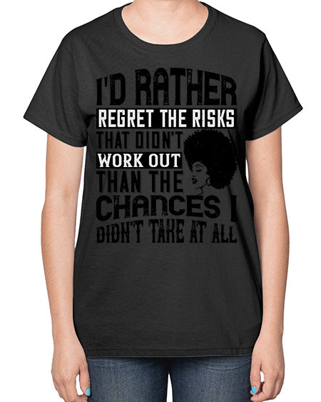 Id rather regret the risks that didnt work out than the chances I didnt take at all Style 23# - black afro- Ladies T-Shirt