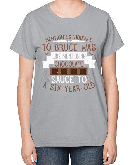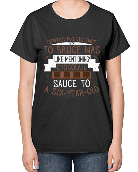 mentioning violence to bruce was like mentioning chocolate sauce to a sixyearold 335# - chocolate- Ladies T-Shirt