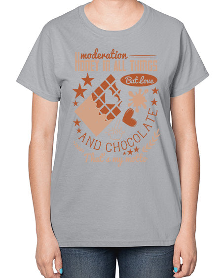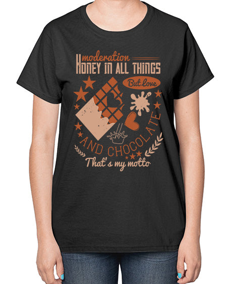 moderation honey in all things but love and chocolate thats my motto 337# - chocolate- Ladies T-Shirt