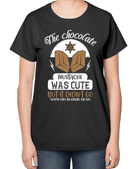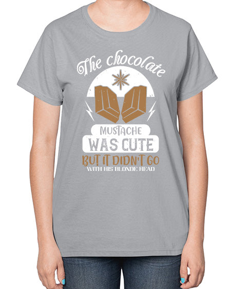 the chocolate mustache was cute but it didnt go with his blonde head 415# - chocolate- Ladies T-Shirt