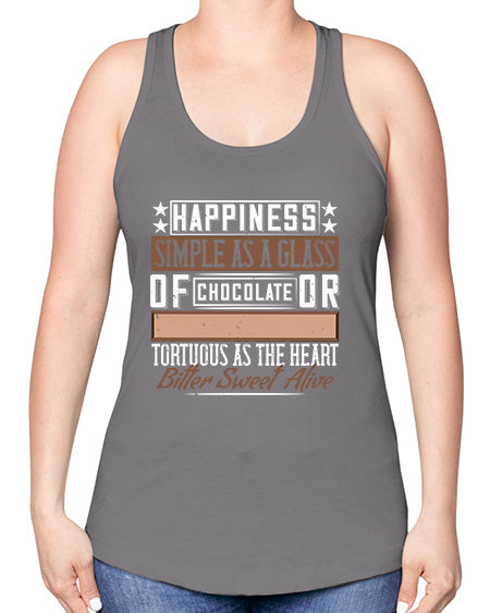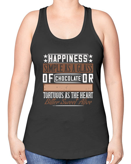 happiness simple as a glass of chocolate or tortuous as the heart bitter sweet alive 185# - chocolate -Racerback Tank