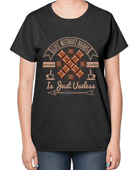 life without books chocolate coffee is just useless 318# - chocolate- Ladies T-Shirt