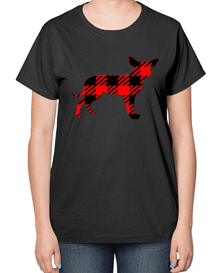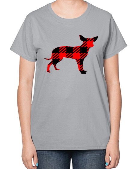 buffalo plaid pointed ear dog 64# - dogs- Ladies T-Shirt