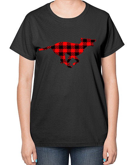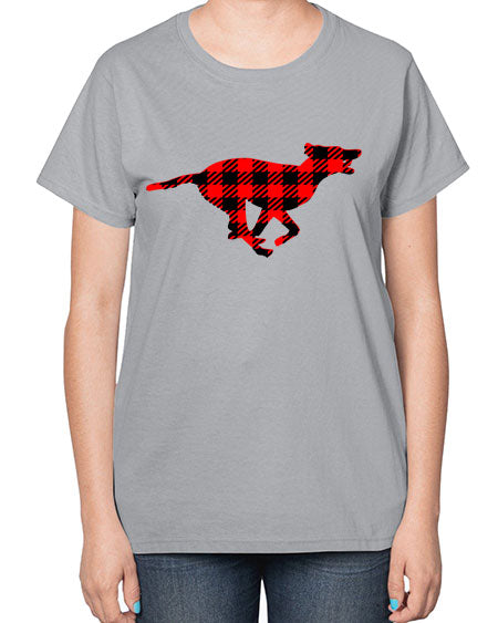 buffalo plaid running dog 65# - dogs- Ladies T-Shirt