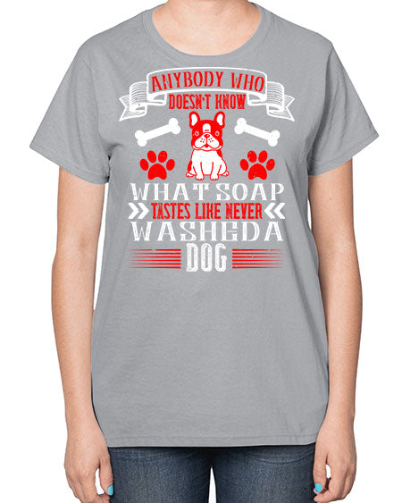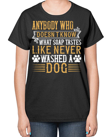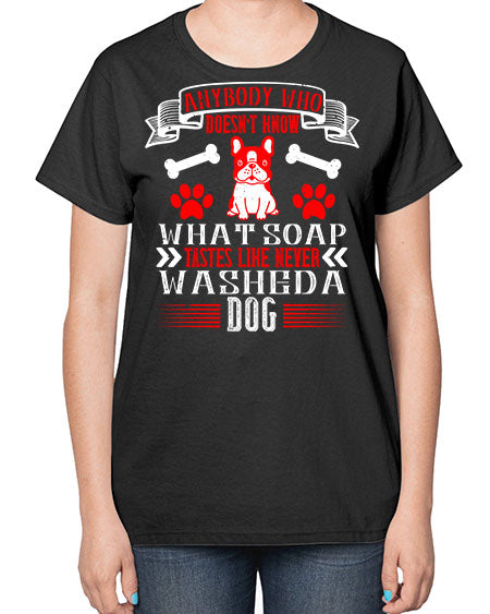 Anybody who doesn’t know what soap tastes like never washed a dog Style 176# - dogs- Ladies T-Shirt