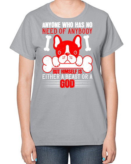 Anyone who has no need of anybody but himself is either a beast or a God Style 132# - dogs- Ladies T-Shirt