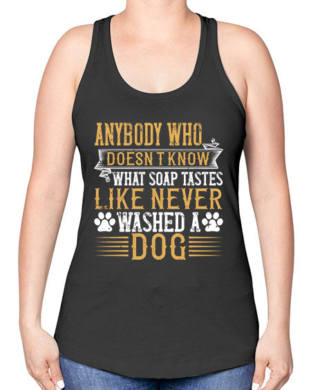 Anybody who doesn’t know what soap tastes like never washed a dog Style 176# - dogs -Racerback Tank