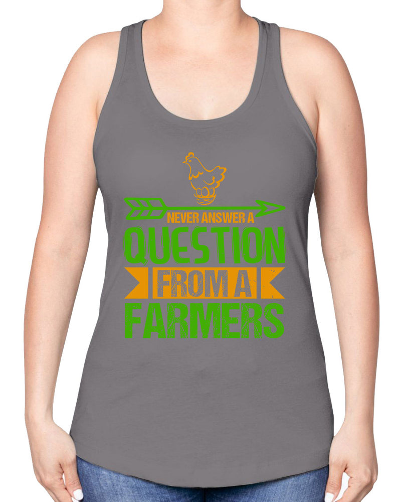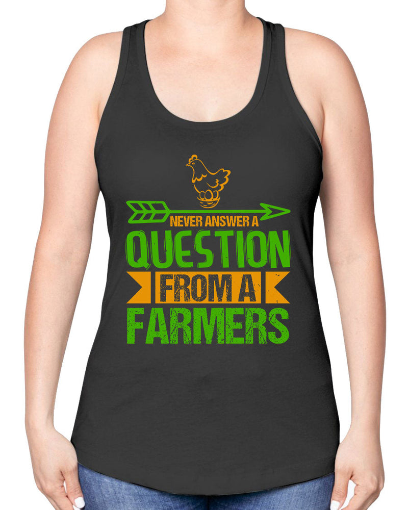 Never answer a question from a farmers - Farm & Garden -Racerback Tank