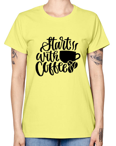 start with coffee 1567# - coffee- Ladies T-Shirt
