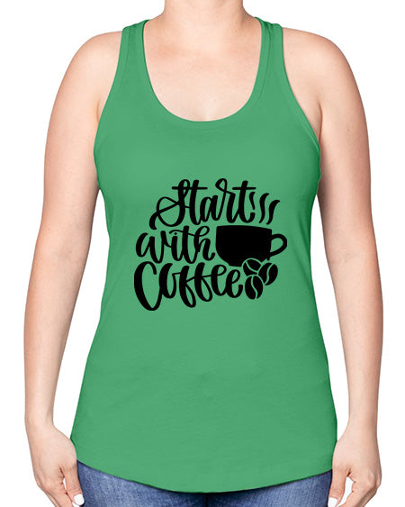 start with coffee 1566# - coffee- Ladies T-Shirt