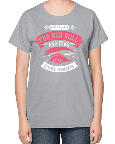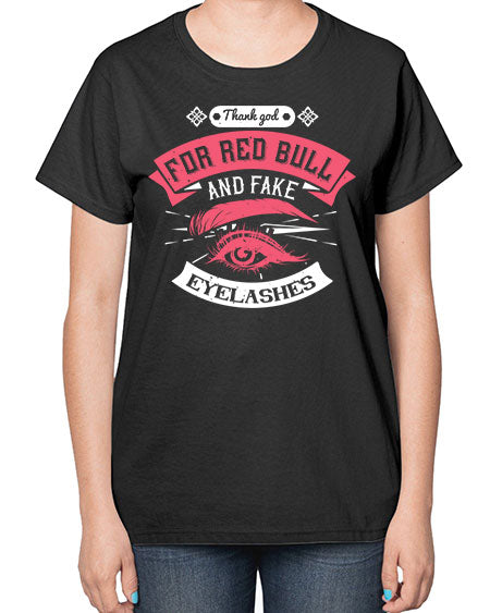 Thank god for Red Bull and fake eyelashes Style 185# -makeup Ladies T-Shirt