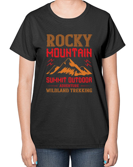 rocky mountain summit outdoor adventure wild and trekking 1744# - mountain valcano hill- Ladies T-Shirt