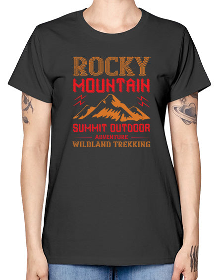 rocky mountain summit outdoor adventure wild and trekking 1744# - mountain valcano hill - Missy T-Shirt