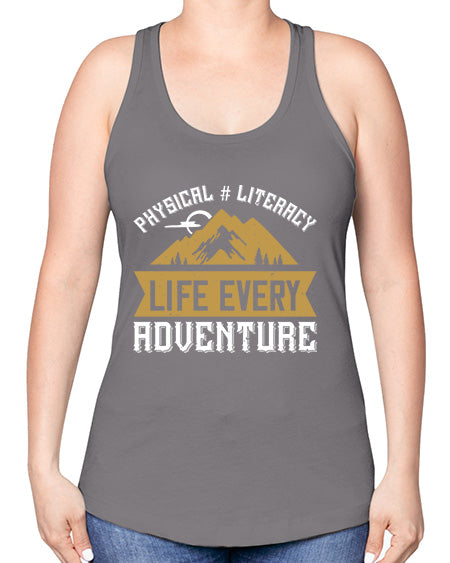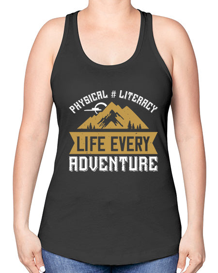 physical literacy life every adventure 1618# - mountain valcano hill -Racerback Tank