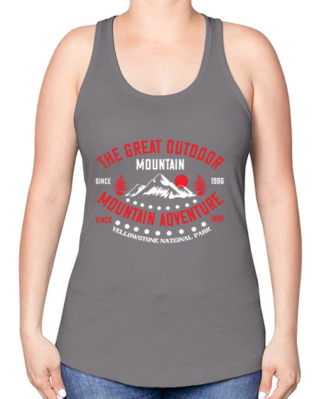 the great outdoor mountain since mountain adventure since yellowstone national park 1984# - mountain valcano hill -Racerback Tank