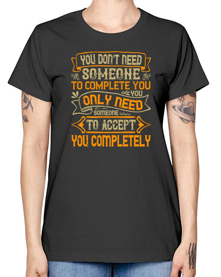 You dont need someone to complete you You only need someone to accept you completely Style 3# - pig - Missy T-Shirt