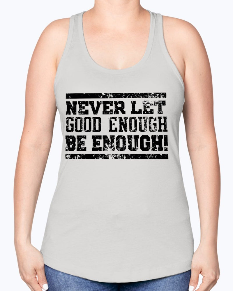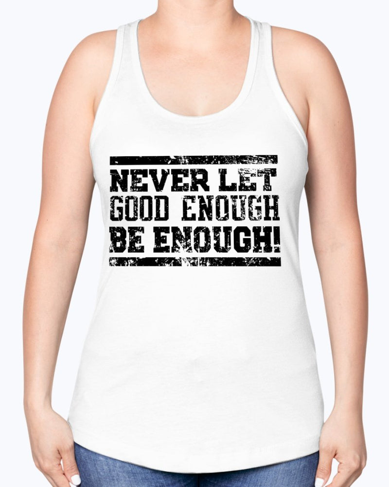 Never Let Good Enough Be enough - Sports- Racerback Tank