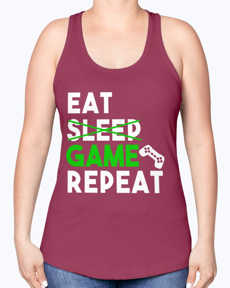 Eat, Sleep, Game, Repeat - Hobbies-Racerback Tank