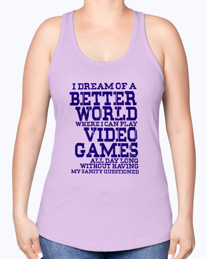 I dream of a better world where i can play video games - Hobbies-Racerback Tank